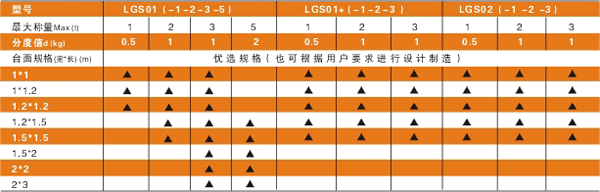 注: LGS01为固定式??????? LGS01+为移动式??????? LGS02为液压升降移动式