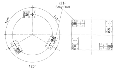 三件套:三只均带拉杆式,切向安装?????? 四件套:三只带拉杆式,一只不带拉杆式